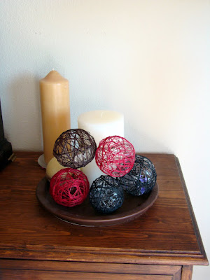 So roll on a few years later, I have been wanting to get my hands a little dirty playing lately and thought I would make some more string balls in different colours to go with a candle plate I have.